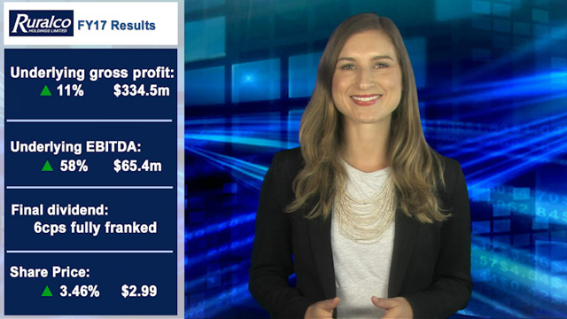 14 Nov 2017 - Agribusiness company Ruralco (ASX:RHL) records an 11 per cent increase in underlying gross profit to $334.5 million in its FY2017 results to September.