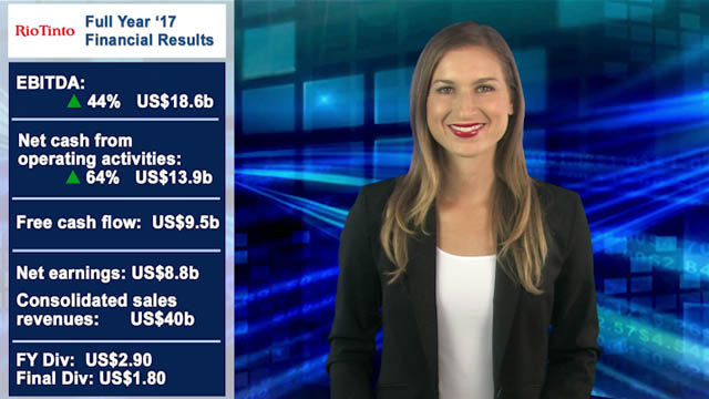 08 Feb 2018 - Rio Tinto (ASX:RIO) declares a record full-year dividend of US$5.2 billion at US$2.90 per share, bringing the company’s final dividend to US$3.2 billion at US$1.80 pe…
