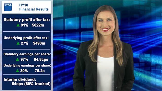 08 Feb 2018 - Energy company AGL Energy (ASX:AGL) reports statutory profit after tax of $622 million for the half year, a 91 per cent increase on the prior corresponding period.