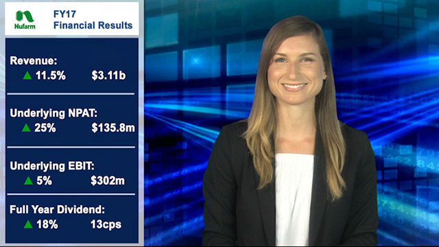 26 Sep 2017 - Nufarm (ASX:NUF) reports an 11.5 per cent revenue increase to more than $3.11 billion from $2.79 billion in the previous year in its 2017 financial year results.